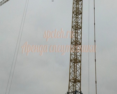 Марка КБ-403Б. Высота подъема - 41/54 метра, грузоподъемность 8 тонн, на конце стрелы 3 тонны, длинна стрелы 30 метров. Кран на рельсовом ходу.